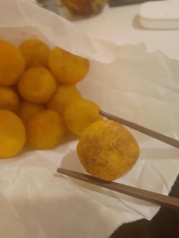 剛剛很開心的去買一顆一元的「地瓜球」,梅粉可以自己灑,我拿起來那罐子的時候,旁邊的人客想要阻止我,以為我擋到他,我跑去旁邊灑,撒下去後才發現想打噴嚏,是滿滿的胡椒鹽。我的地瓜球配了不少黑黑胡椒鹽...